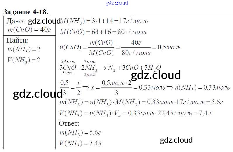Ответ на задание 4-18 Задачник Химия за 9 (девятый) класс Кузнецова, Левкин Алгоритм успеха 2015