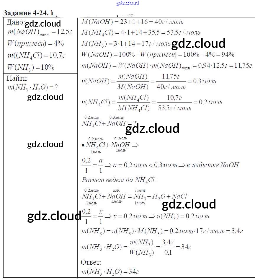 Ответ на задание 4-24 Задачник Химия за 9 (девятый) класс Кузнецова, Левкин Алгоритм успеха 2015