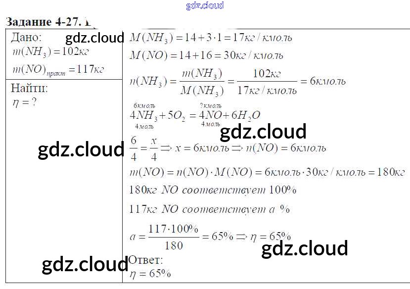 Ответ на задание 4-27 Задачник Химия за 9 (девятый) класс Кузнецова, Левкин Алгоритм успеха 2015