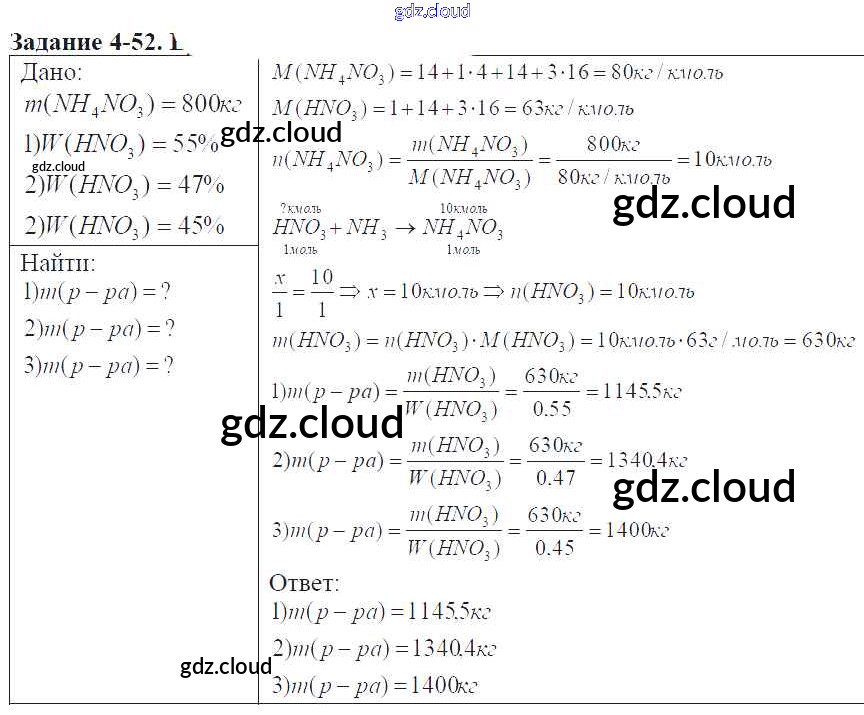 Ответ на задание 4-52 Задачник Химия за 9 (девятый) класс Кузнецова, Левкин Алгоритм успеха 2015