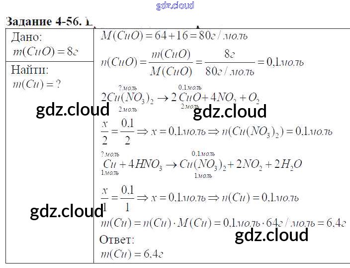 Ответ на задание 4-56 Задачник Химия за 9 (девятый) класс Кузнецова, Левкин Алгоритм успеха 2015