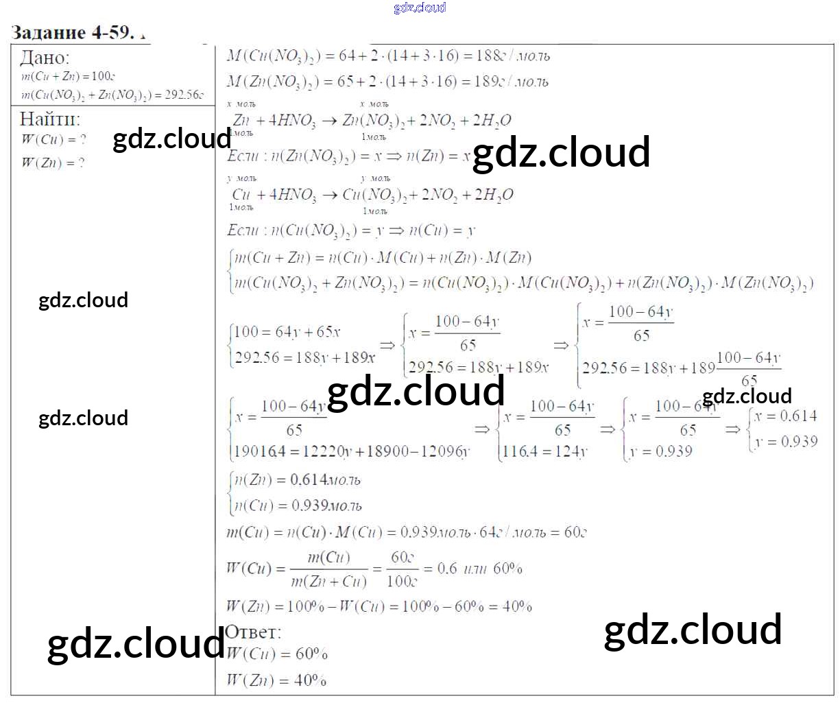 Ответ на задание 4-59 Задачник Химия за 9 (девятый) класс Кузнецова, Левкин Алгоритм успеха 2015