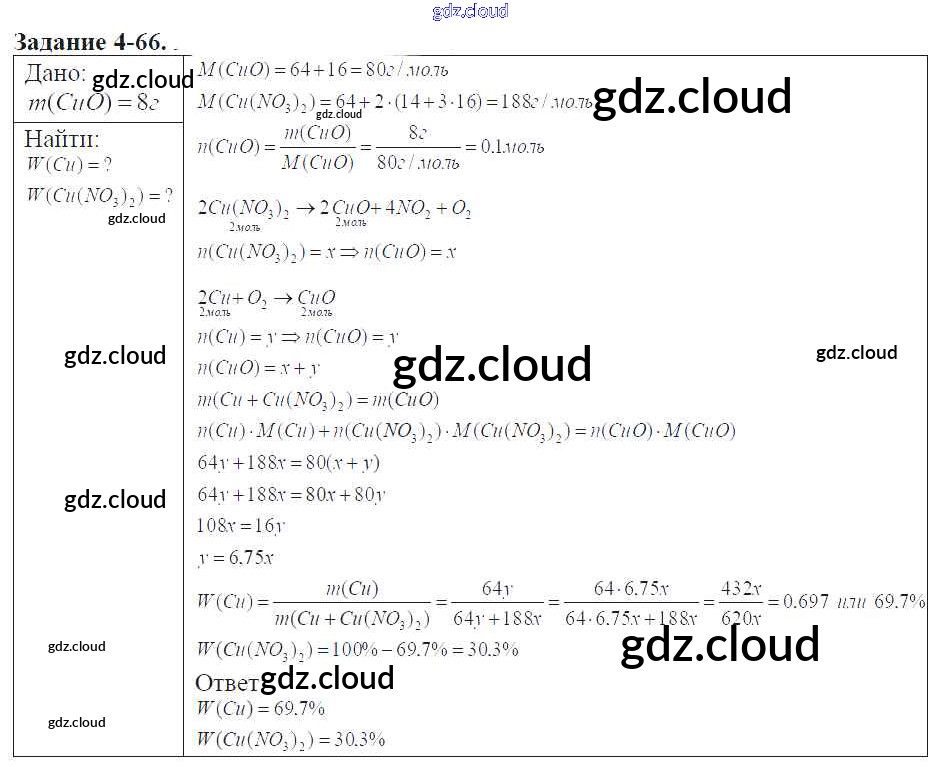 Ответ на задание 4-66 Задачник Химия за 9 (девятый) класс Кузнецова, Левкин Алгоритм успеха 2015