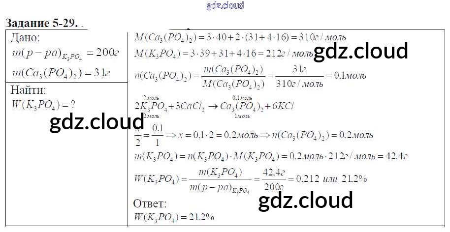 Ответ на задание 5-29 Задачник Химия за 9 (девятый) класс Кузнецова, Левкин Алгоритм успеха 2015