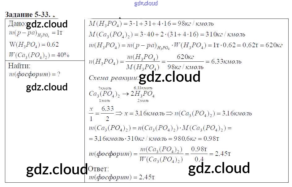 Ответ на задание 5-33 Задачник Химия за 9 (девятый) класс Кузнецова, Левкин Алгоритм успеха 2015