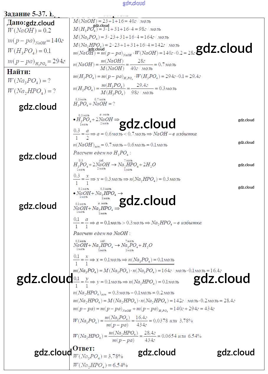 Ответ на задание 5-37 Задачник Химия за 9 (девятый) класс Кузнецова, Левкин Алгоритм успеха 2015