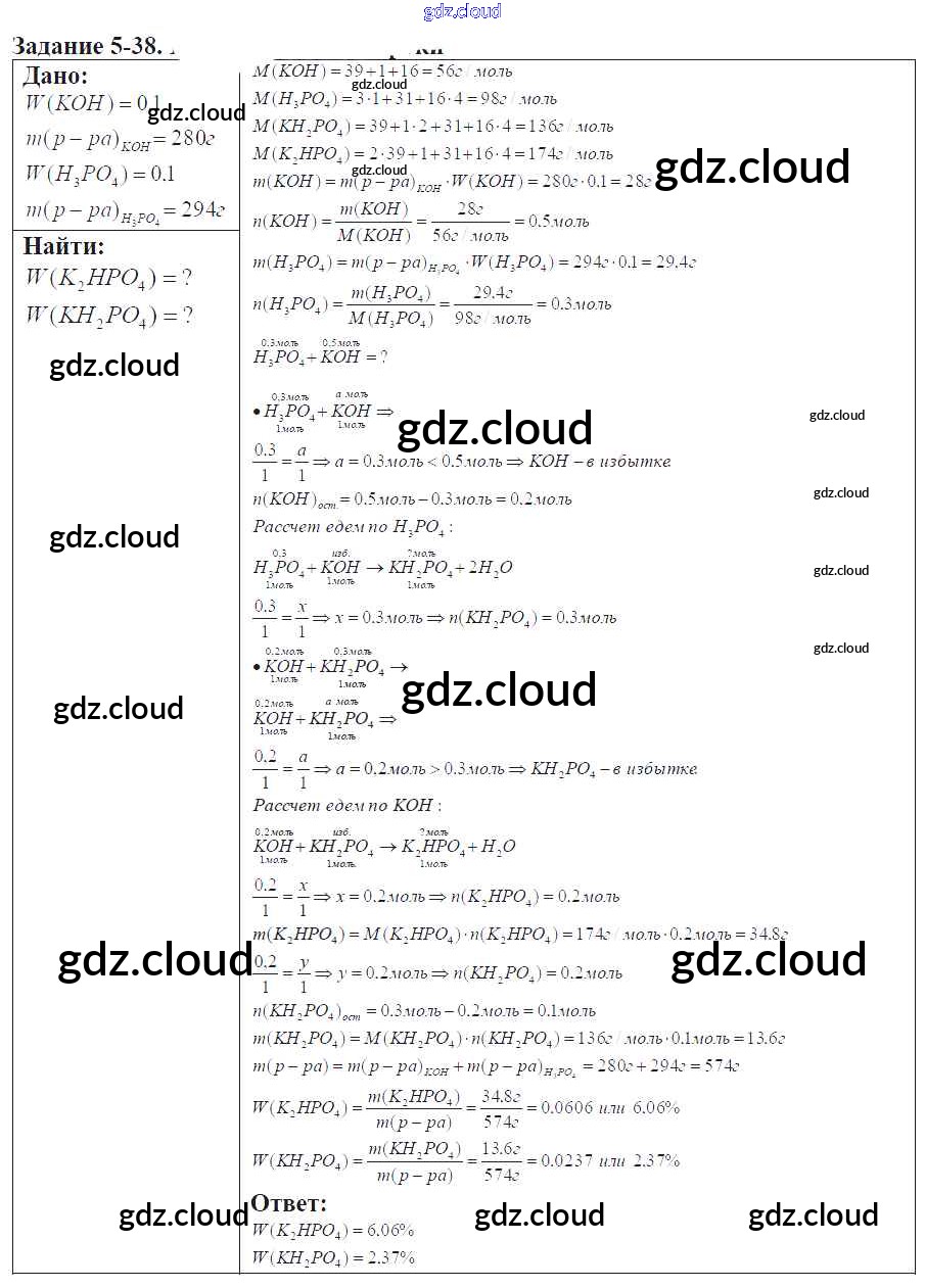 Ответ на задание 5-38 Задачник Химия за 9 (девятый) класс Кузнецова, Левкин Алгоритм успеха 2015