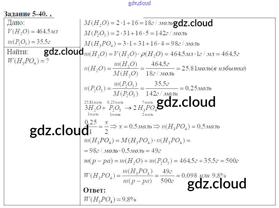 Ответ на задание 5-40 Задачник Химия за 9 (девятый) класс Кузнецова, Левкин Алгоритм успеха 2015