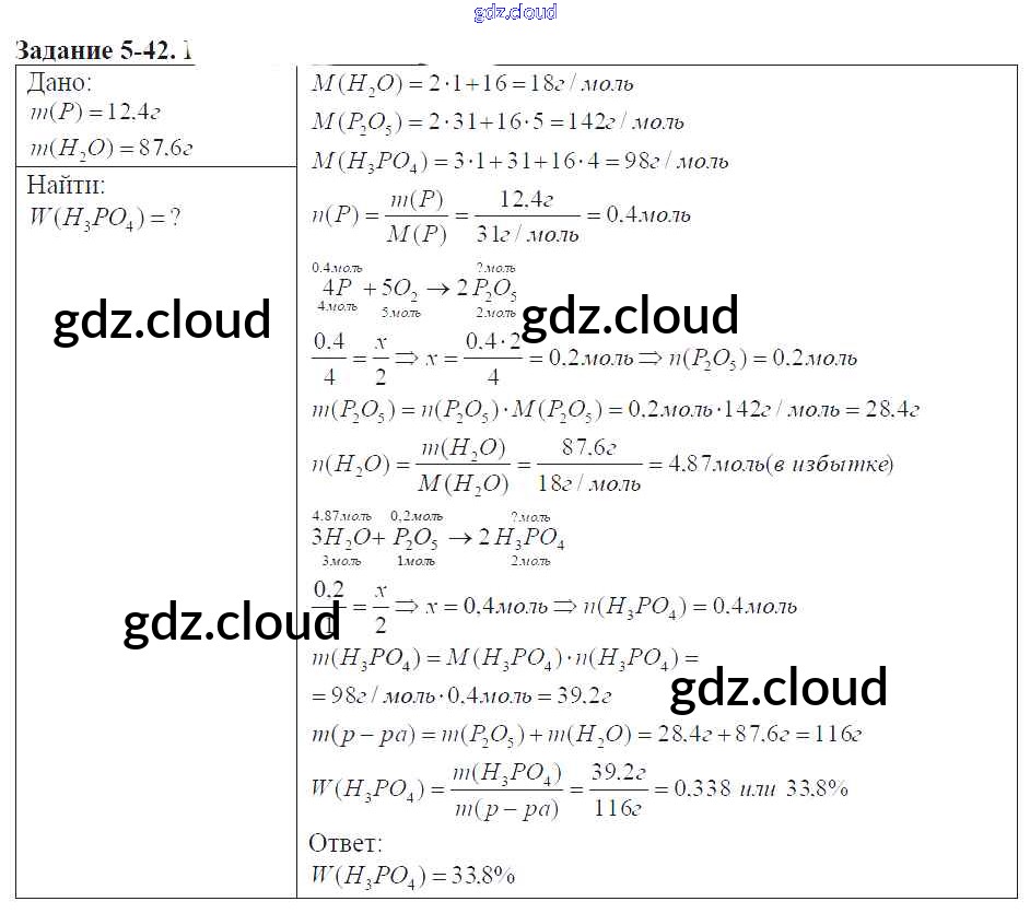 Ответ на задание 5-42 Задачник Химия за 9 (девятый) класс Кузнецова, Левкин Алгоритм успеха 2015