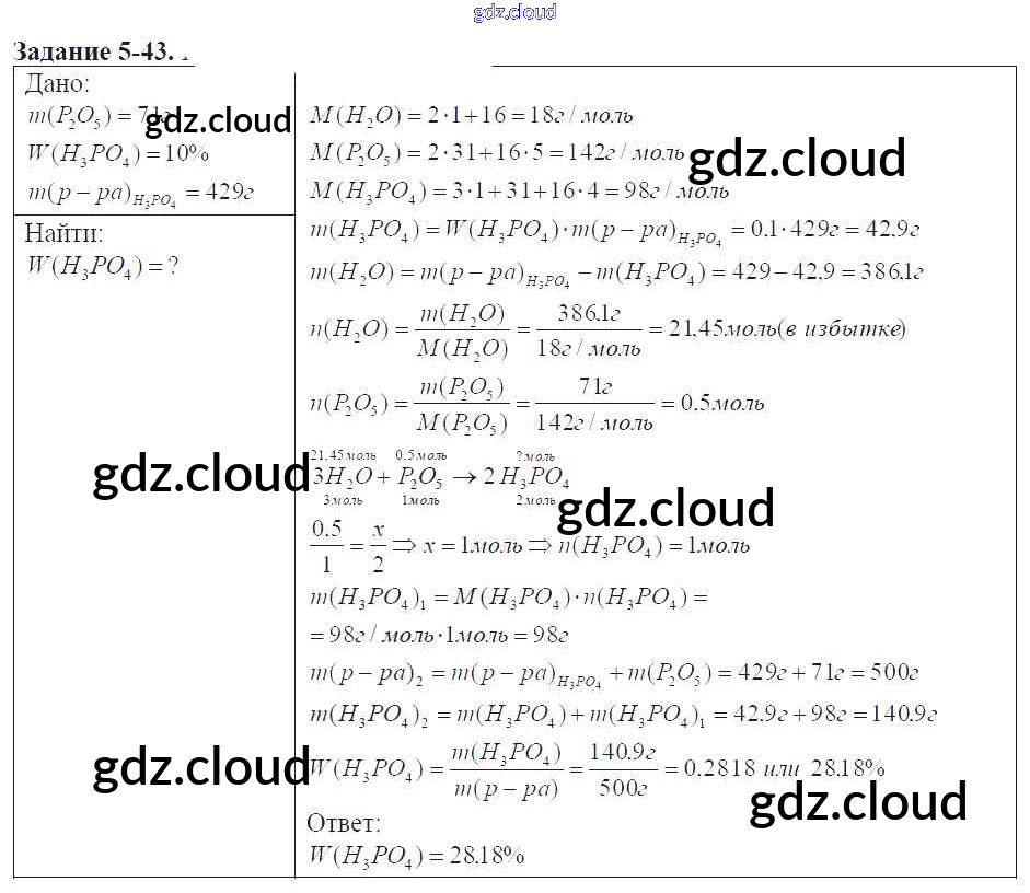 Ответ на задание 5-43 Задачник Химия за 9 (девятый) класс Кузнецова, Левкин Алгоритм успеха 2015