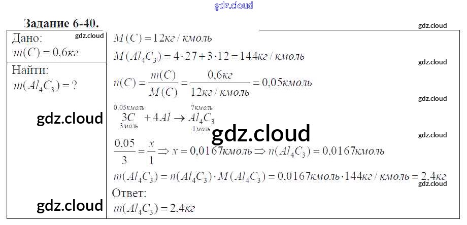 Ответ на задание 6-40 Задачник Химия за 9 (девятый) класс Кузнецова, Левкин Алгоритм успеха 2015