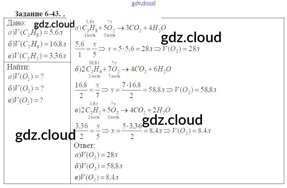 Ответ на задание 6-43 Задачник Химия за 9 (девятый) класс Кузнецова, Левкин Алгоритм успеха 2015