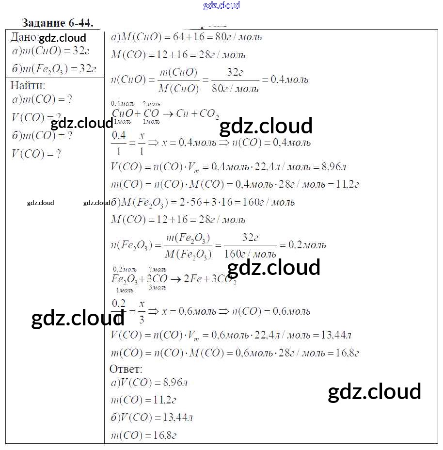 Ответ на задание 6-44 Задачник Химия за 9 (девятый) класс Кузнецова, Левкин Алгоритм успеха 2015