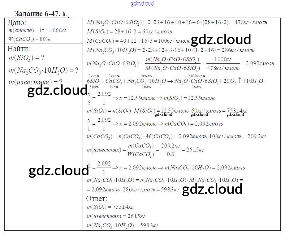 Ответ на задание 6-47 Задачник Химия за 9 (девятый) класс Кузнецова, Левкин Алгоритм успеха 2015