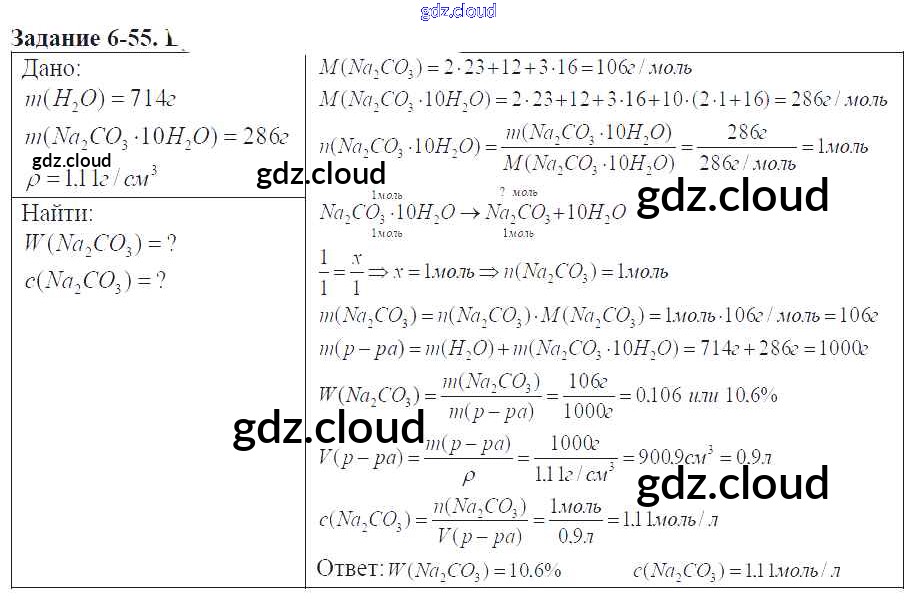 Ответ на задание 6-55 Задачник Химия за 9 (девятый) класс Кузнецова, Левкин Алгоритм успеха 2015