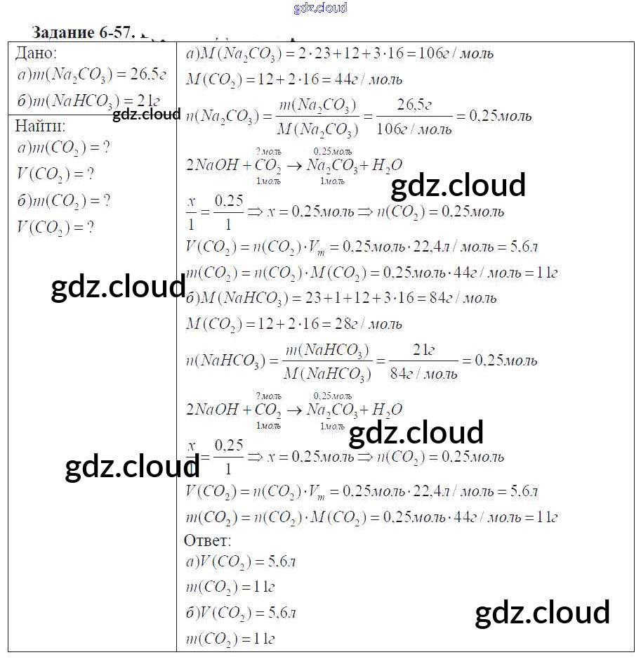 Ответ на задание 6-57 Задачник Химия за 9 (девятый) класс Кузнецова, Левкин Алгоритм успеха 2015