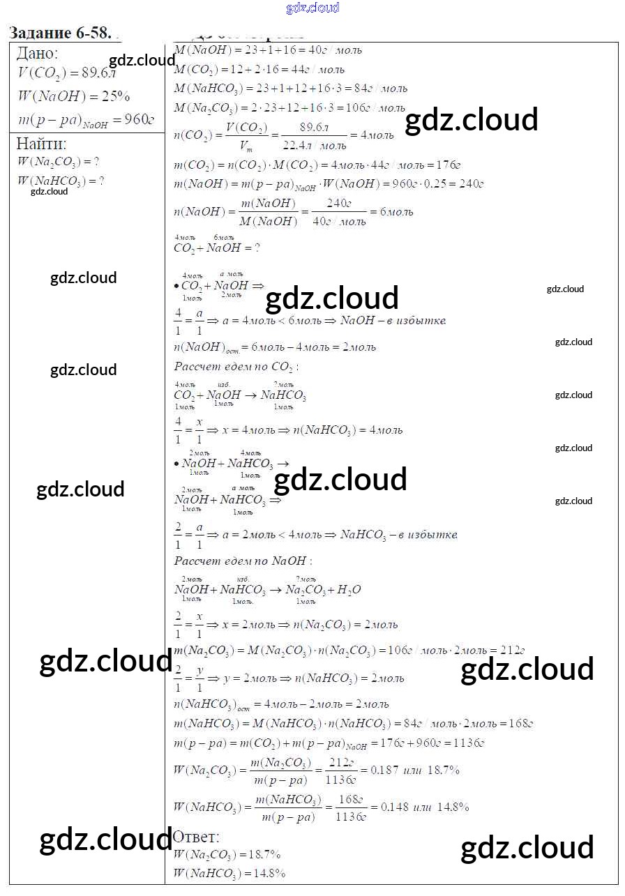 Ответ на задание 6-58 Задачник Химия за 9 (девятый) класс Кузнецова, Левкин Алгоритм успеха 2015