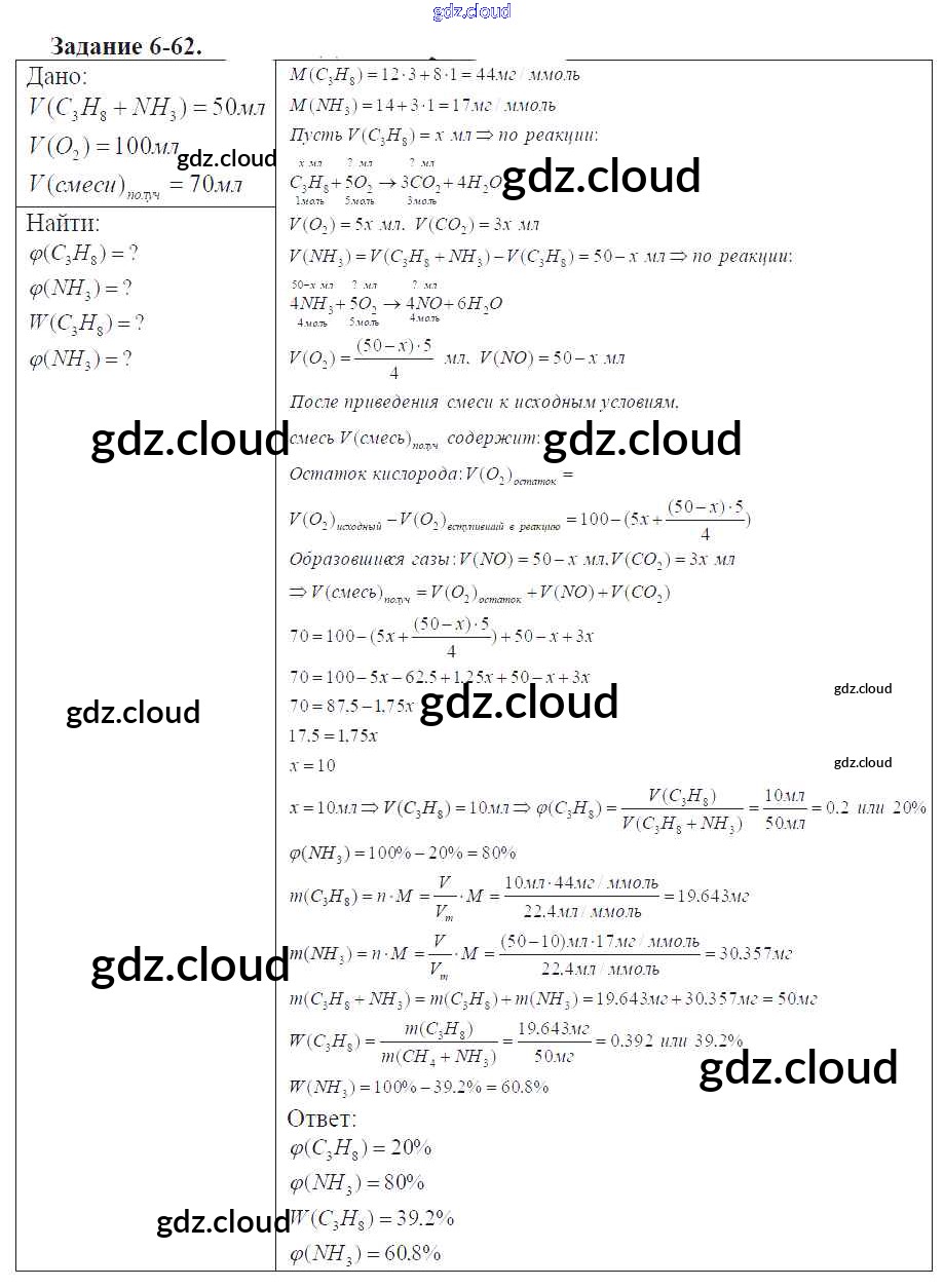 Ответ на задание 6-62 Задачник Химия за 9 (девятый) класс Кузнецова, Левкин Алгоритм успеха 2015