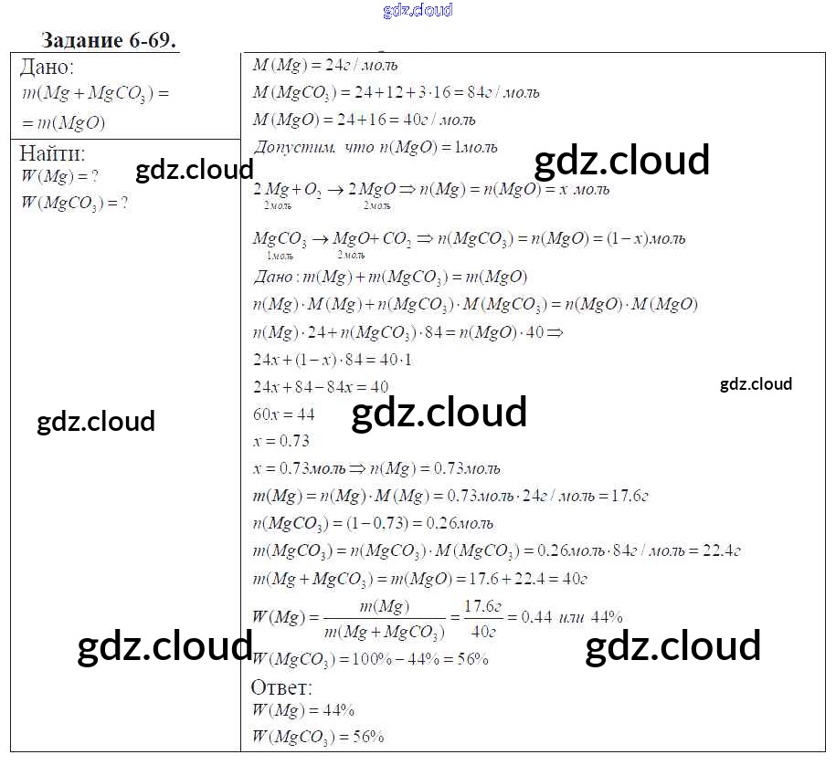 Ответ на задание 6-69 Задачник Химия за 9 (девятый) класс Кузнецова, Левкин Алгоритм успеха 2015