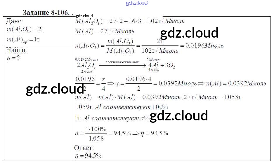 Ответ на задание 8-106 Задачник Химия за 9 (девятый) класс Кузнецова, Левкин Алгоритм успеха 2015