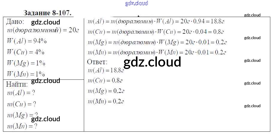 Ответ на задание 8-107 Задачник Химия за 9 (девятый) класс Кузнецова, Левкин Алгоритм успеха 2015