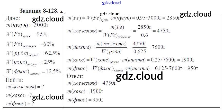 Ответ на задание 8-128 Задачник Химия за 9 (девятый) класс Кузнецова, Левкин Алгоритм успеха 2015