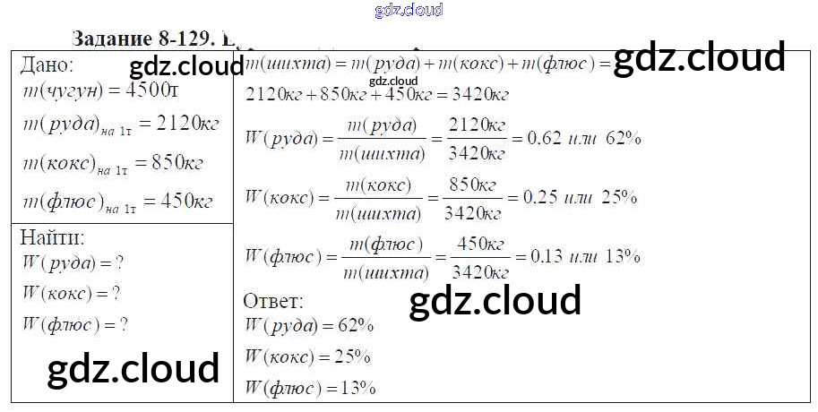 Ответ на задание 8-129 Задачник Химия за 9 (девятый) класс Кузнецова, Левкин Алгоритм успеха 2015