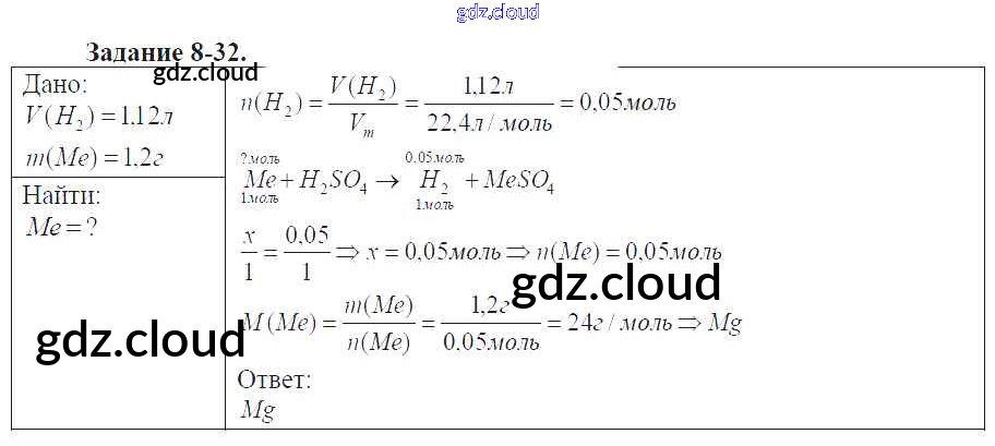 Ответ на задание 8-32 Задачник Химия за 9 (девятый) класс Кузнецова, Левкин Алгоритм успеха 2015
