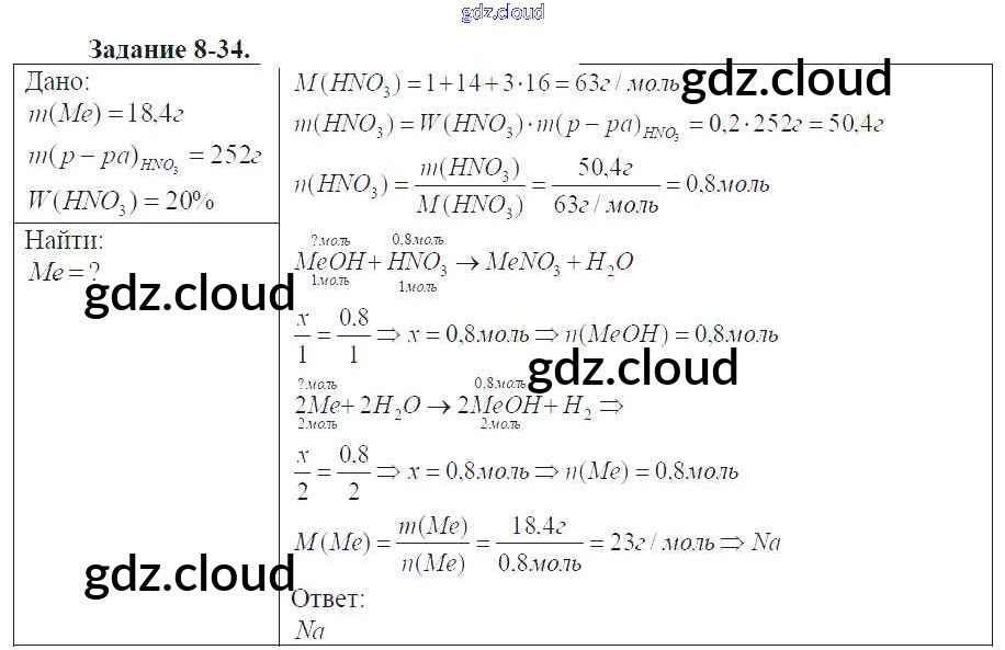 Ответ на задание 8-34 Задачник Химия за 9 (девятый) класс Кузнецова, Левкин Алгоритм успеха 2015