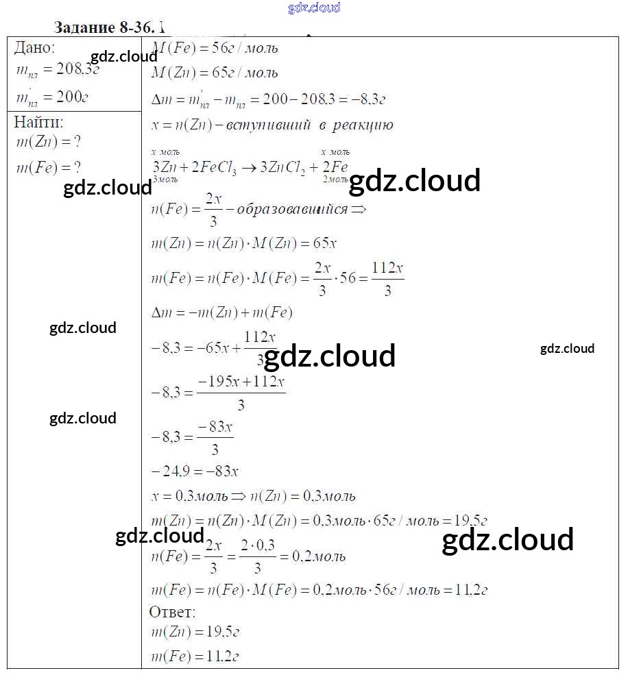Ответ на задание 8-36 Задачник Химия за 9 (девятый) класс Кузнецова, Левкин Алгоритм успеха 2015