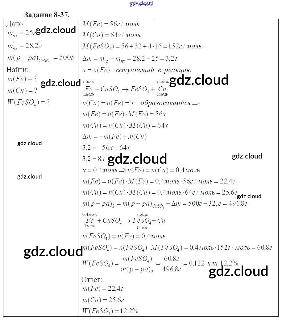 Ответ на задание 8-37 Задачник Химия за 9 (девятый) класс Кузнецова, Левкин Алгоритм успеха 2015