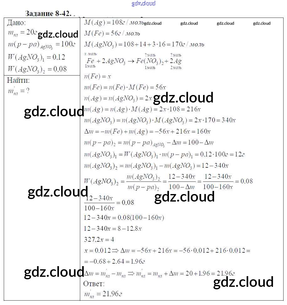 Ответ на задание 8-42 Задачник Химия за 9 (девятый) класс Кузнецова, Левкин Алгоритм успеха 2015