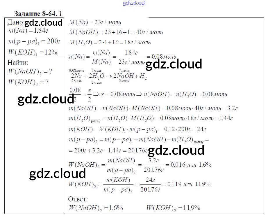 Ответ на задание 8-64 Задачник Химия за 9 (девятый) класс Кузнецова, Левкин Алгоритм успеха 2015