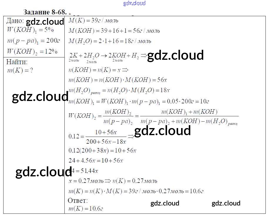 Ответ на задание 8-68 Задачник Химия за 9 (девятый) класс Кузнецова, Левкин Алгоритм успеха 2015