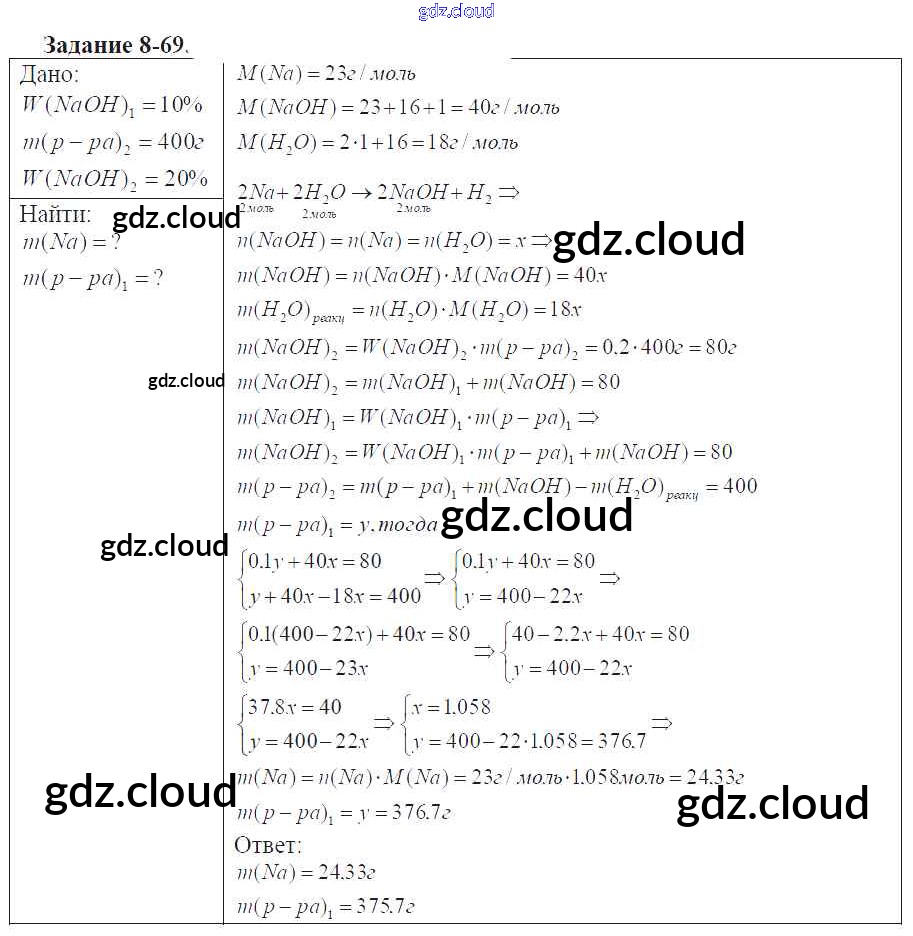 Ответ на задание 8-69 Задачник Химия за 9 (девятый) класс Кузнецова, Левкин Алгоритм успеха 2015