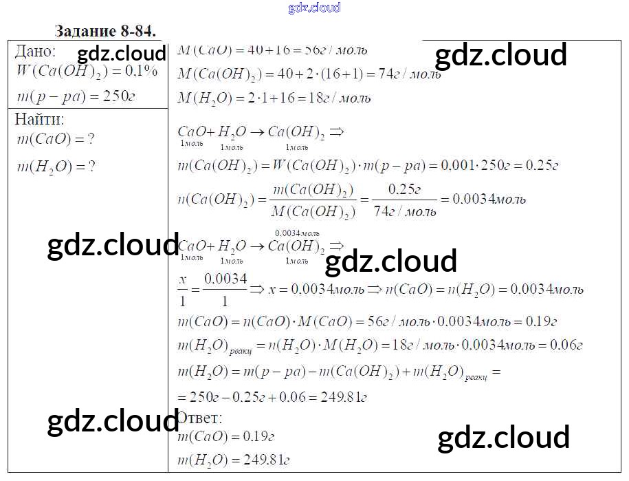 Ответ на задание 8-84 Задачник Химия за 9 (девятый) класс Кузнецова, Левкин Алгоритм успеха 2015