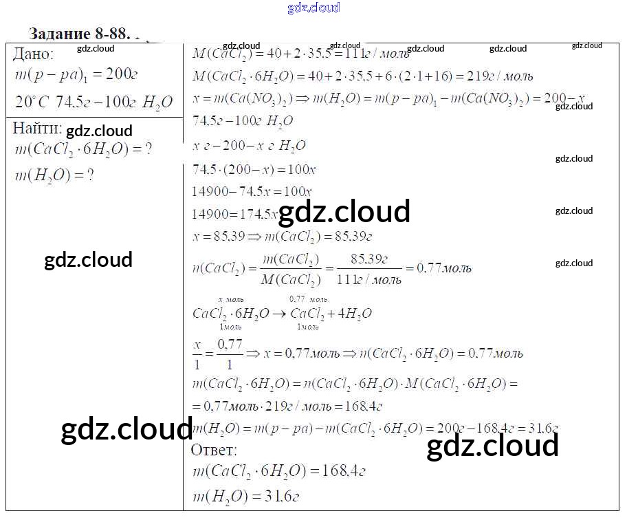 Ответ на задание 8-88 Задачник Химия за 9 (девятый) класс Кузнецова, Левкин Алгоритм успеха 2015