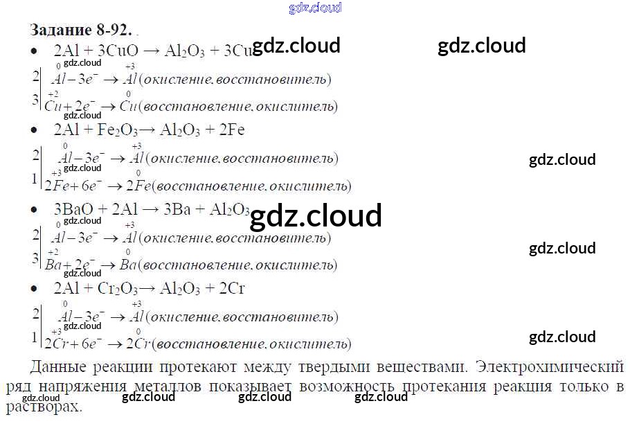 Ответ на задание 8-92 Задачник Химия за 9 (девятый) класс Кузнецова, Левкин Алгоритм успеха 2015