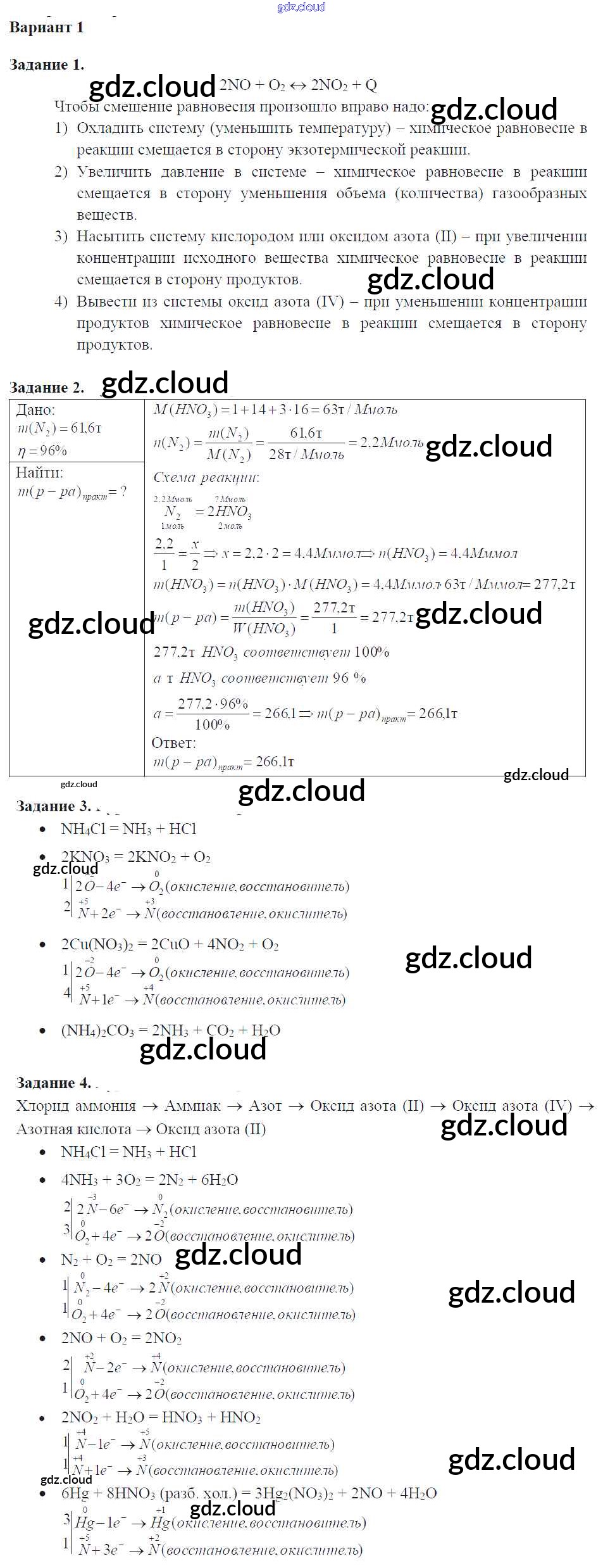 Ответ на задание вариант-1 Задачник Химия за 9 (девятый) класс Кузнецова, Левкин Алгоритм успеха 2015