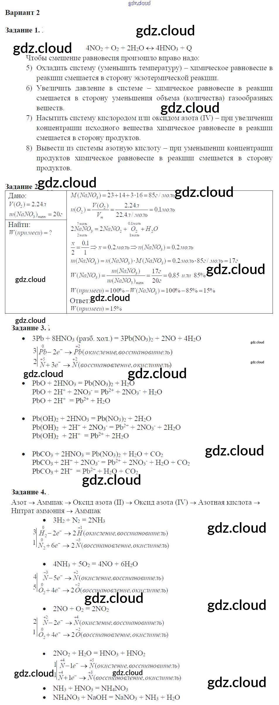 Ответ на задание вариант-2 Задачник Химия за 9 (девятый) класс Кузнецова, Левкин Алгоритм успеха 2015