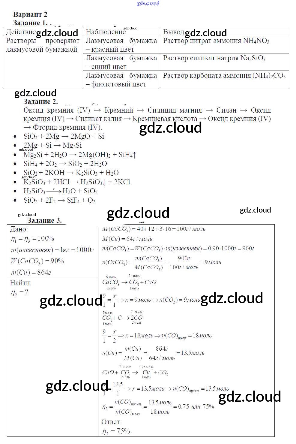 Ответ на задание вариант-2 Задачник Химия за 9 (девятый) класс Кузнецова, Левкин Алгоритм успеха 2015