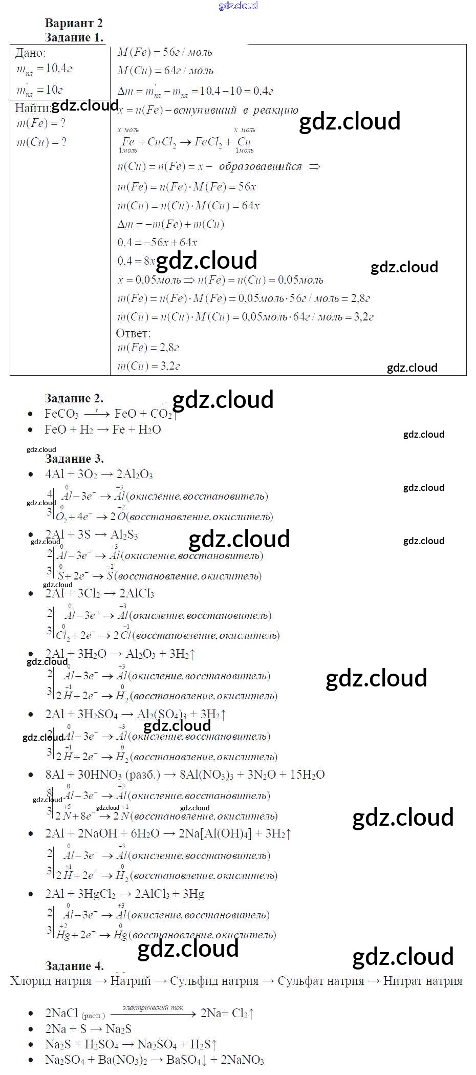 Ответ на задание вариант-2 Задачник Химия за 9 (девятый) класс Кузнецова, Левкин Алгоритм успеха 2015