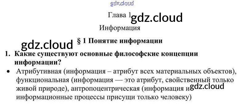 Ответы к §1. Понятие информации по Информатике 10 класс Учебник Семакин Базовый уровень Бином