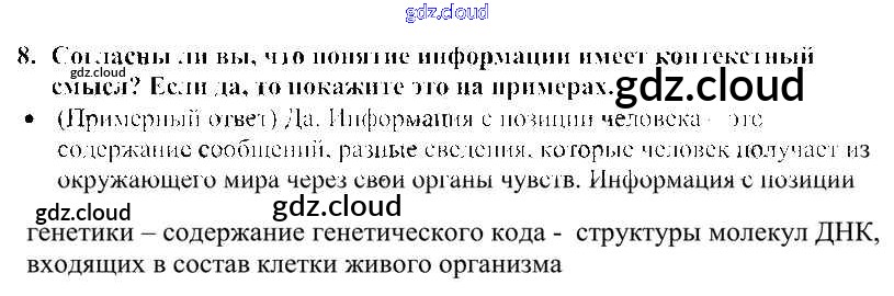 Ответы к §1. Понятие информации по Информатике 10 класс Учебник Семакин Базовый уровень Бином
