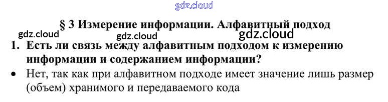Ответы к §3. Измерение информации. Алфавитный подход по Информатике 10 класс Учебник Семакин Базовый уровень Бином