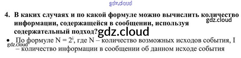 Ответы к §4. Измерение информации. Содержательный подход по Информатике 10 класс Учебник Семакин Базовый уровень Бином
