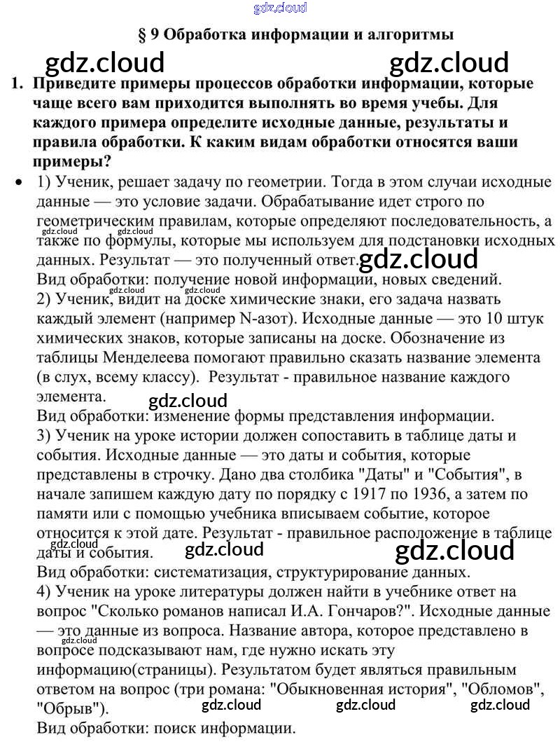Ответы к §9. Обработка информации и алгоритмы по Информатике 10 класс Учебник Семакин Базовый уровень Бином
