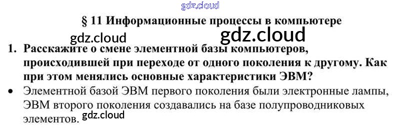 Ответы к §11. Информационные процессы в компьютере по Информатике 10 класс Учебник Семакин Базовый уровень Бином