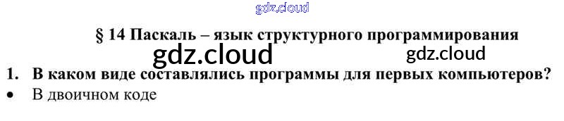 Ответы к §14. Паскаль — язык структурного программирования по Информатике 10 класс Учебник Семакин Базовый уровень Бином