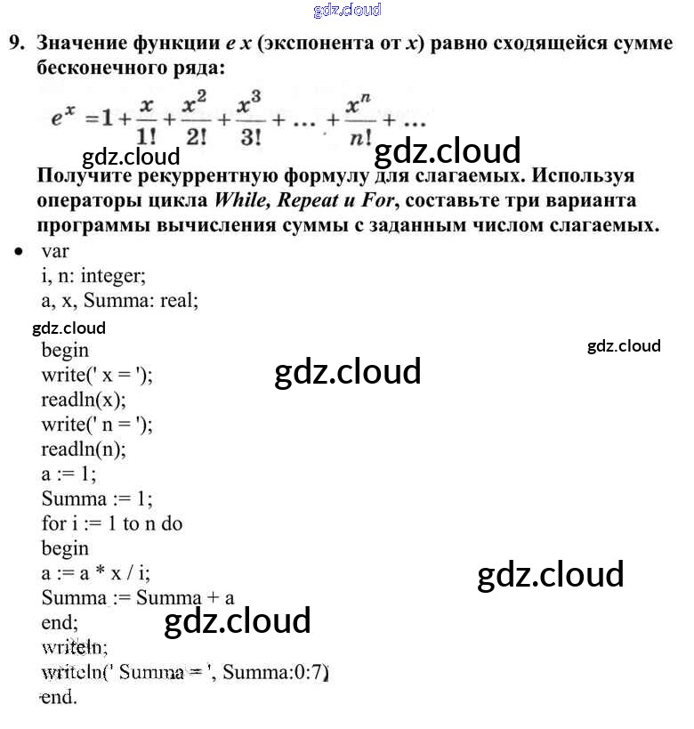 Ответы к §21. Программирование циклов по Информатике 10 класс Учебник Семакин Базовый уровень Бином